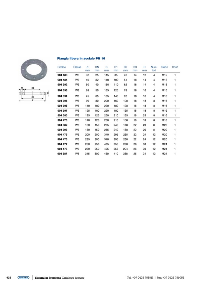 Flangia libera in acciaio PN 16