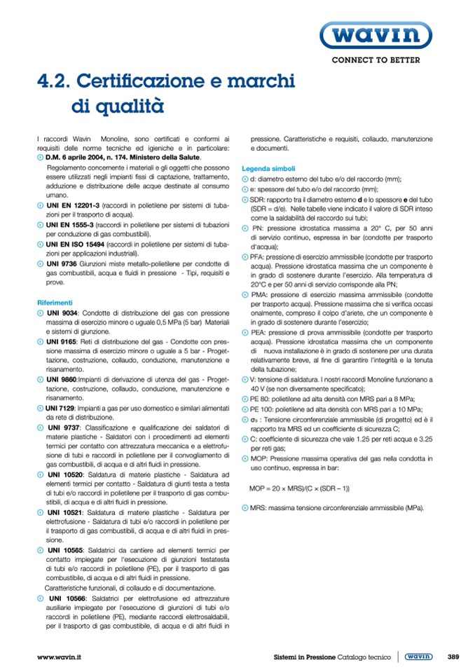 PFA: pressione di esercizio ammissibile (condotte per trasporto