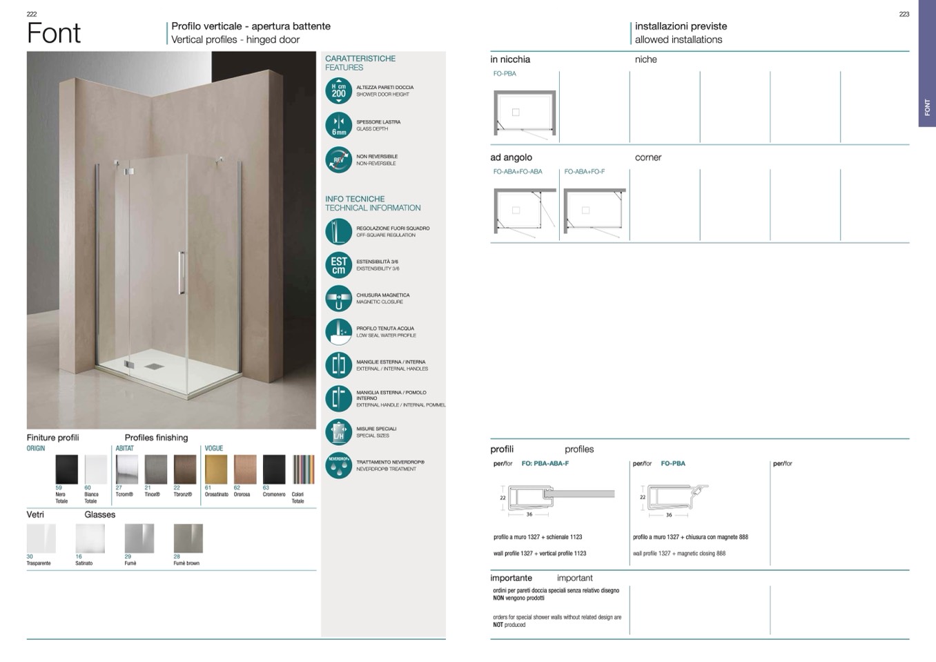 ordini per pareti doccia speciali senza relativo disegno