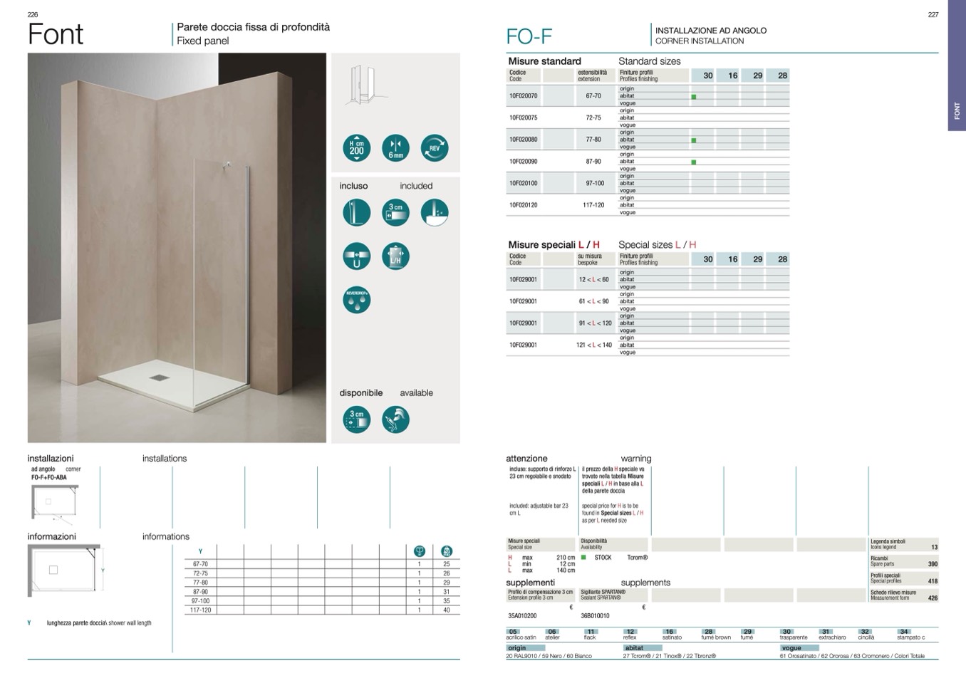 lunghezza parete doccia\ shower wall length