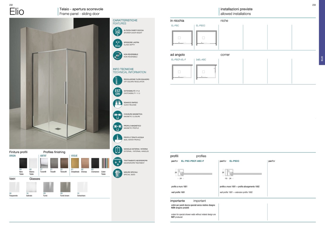 ordini per pareti doccia speciali senza relativo disegno