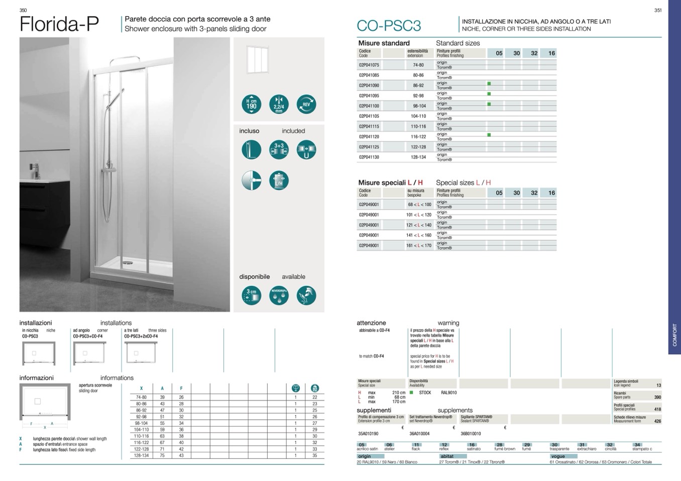 NICHE, CORNER OR THREE SIDES INSTALLATION