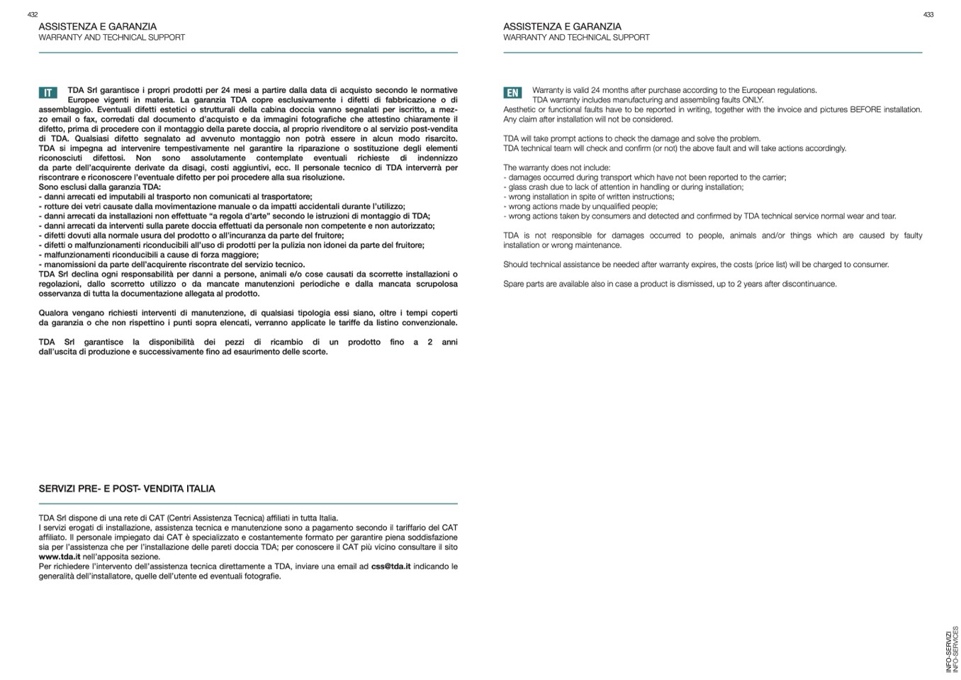sia per l’assistenza che per l’installazione delle pareti doccia TDA; per conoscere il CAT più vicino consultare il sito