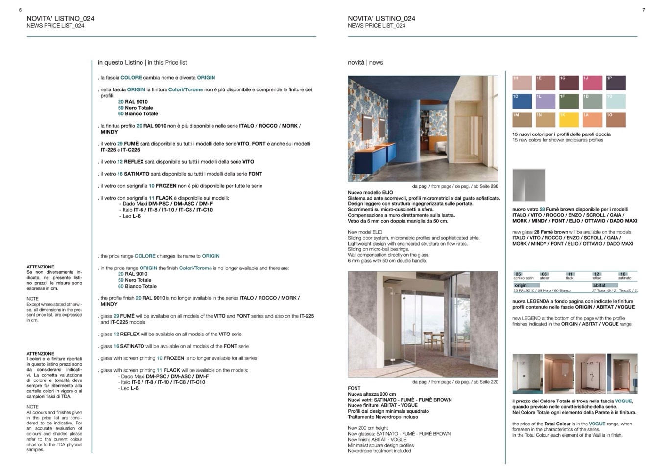 15 nuovi colori per i profili delle pareti doccia