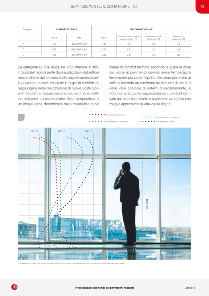 In un pavimento radiante la distribuzione della temperatura in altezza avviene secondo una curva di comfort molto vicina a quella ideale.