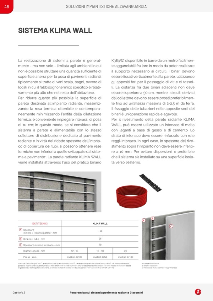 parete si ricorda che la sua temperatura media non deve essere superiore a 40 °C (secondo la UNI EN 1264-3) e che, in caso di intonaco a base