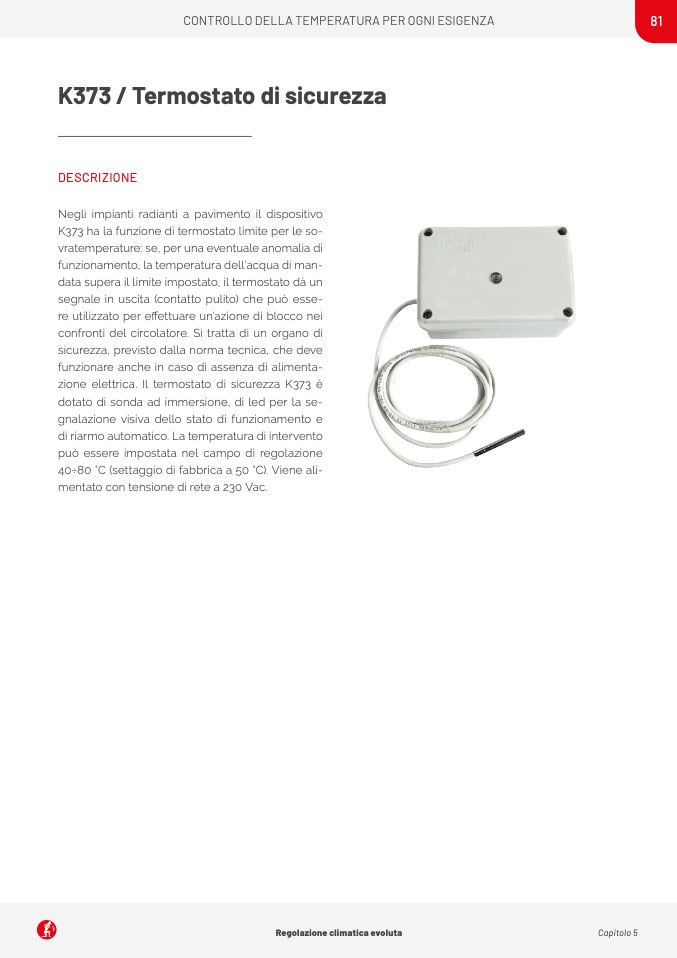 40÷80 °C (settaggio di fabbrica a 50 °C). Viene ali-