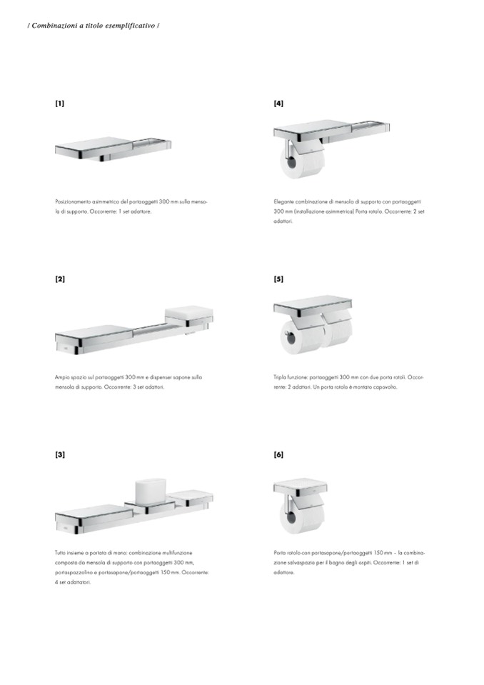 300 mm (installazione asimmetrica) Porta rotolo. Occorrente: 2 set