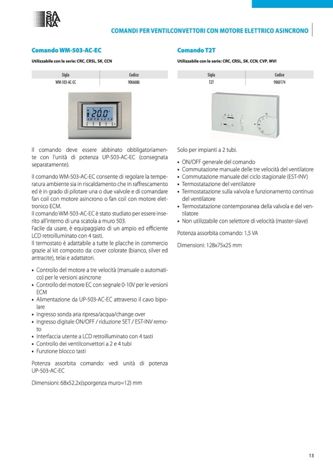 Comandi per ventilConvettori Con motore elettriCo aSinCrono