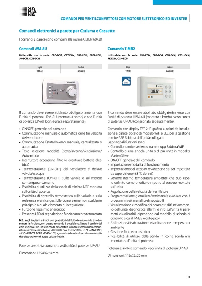 • Controllo tramite tastiera o tramite App Sabiana WiFi