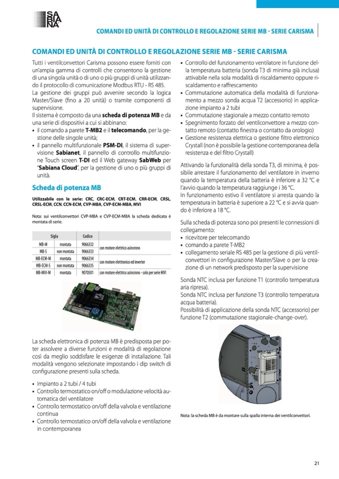 Comandi ed unità di Controllo e regolazione Serie mB - Serie CariSma