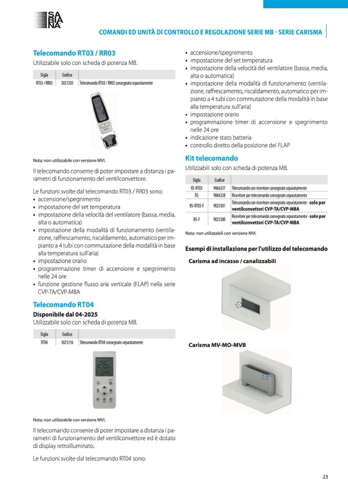 Comandi ed unità di Controllo e regolazione Serie mB - Serie CariSma