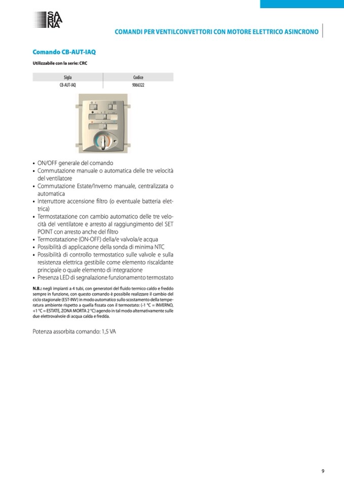 Comandi per ventilConvettori Con motore elettriCo aSinCrono