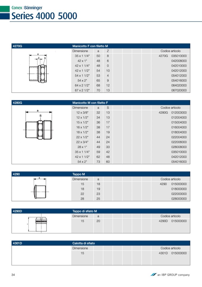 Manicotto M con filetto F