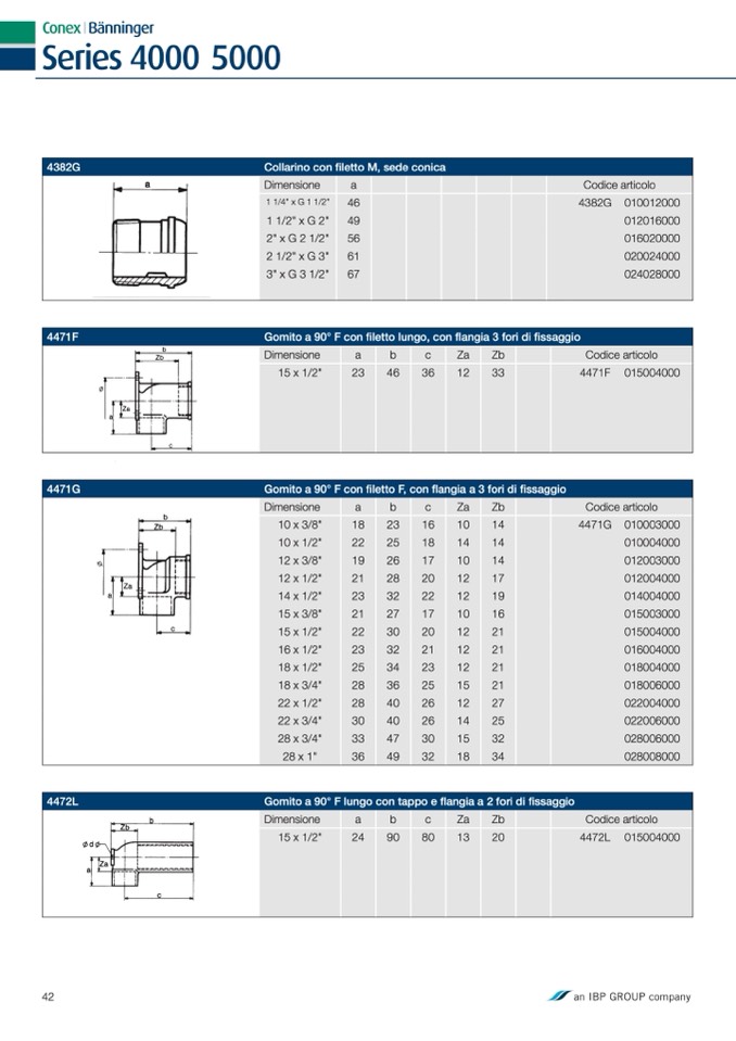 Gomito a 90° F con filetto lungo, con flangia 3 fori di