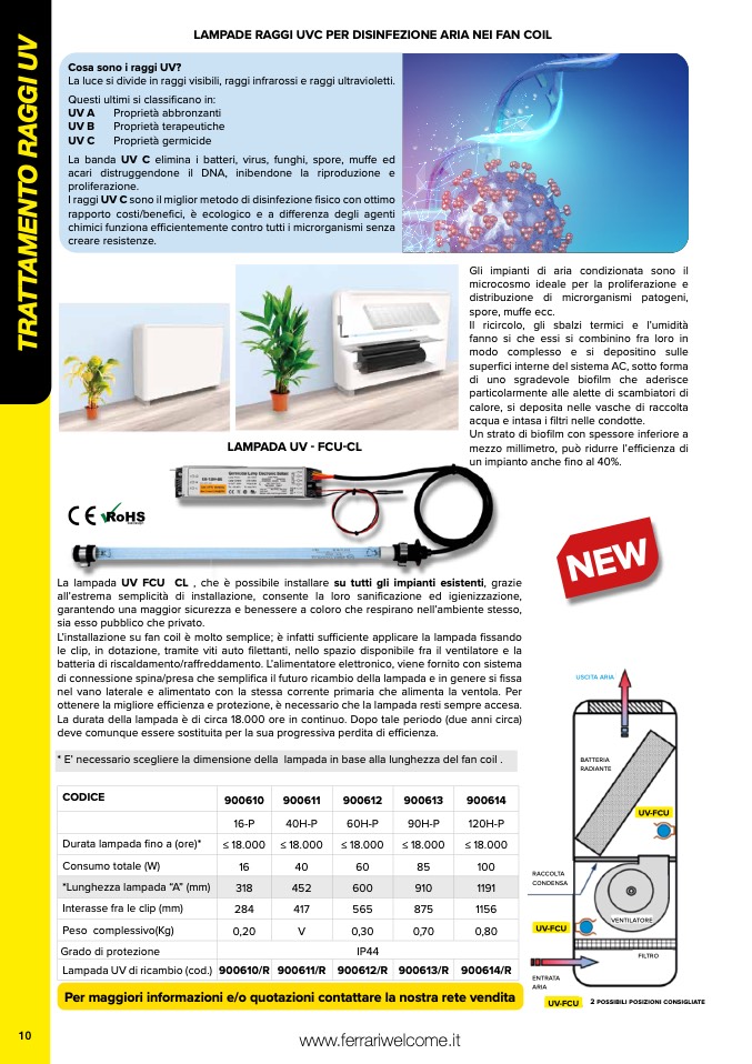 LAMPADE RAGGI UVC PER DISINFEZIONE ARIA NEI FAN COIL