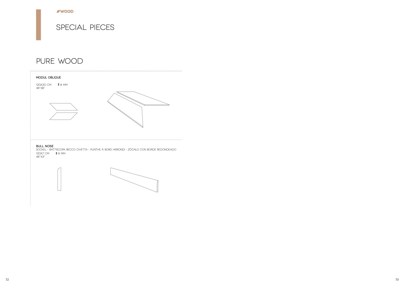Sockel - battiscopa becco civetta - plinthe à bord arrondi - zócalo con borde redondeado