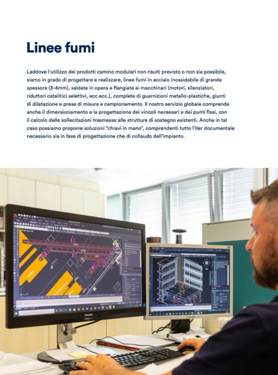 siamo in grado di progettare e realizzare, linee fumi in acciaio inossidabile di grande
