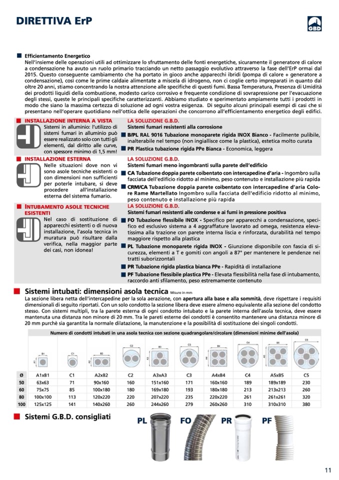 dimensionali di seguito riportati. Con un solo condotto la sezione libera deve essere almeno equivalente alla sezione del condotto