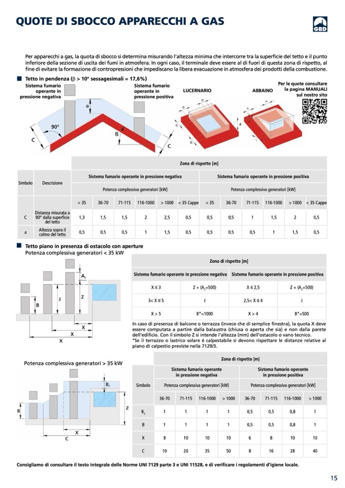 Per apparecchi a gas, la quota di sbocco si determina misurando l’altezza minima che intercorre tra la superficie del tetto e il punto