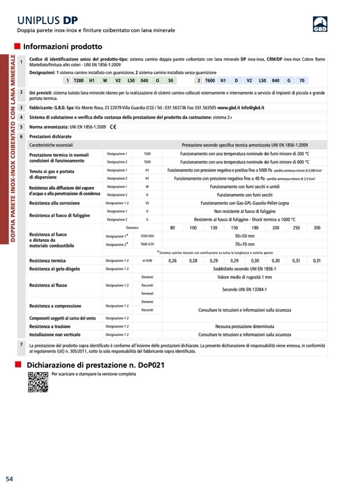 Usi previsti: sistema isolato lana minerale idoneo per la realizzazione di sistemi camino collocati esternamente o internamente a servizio di impianti di piccola e grande