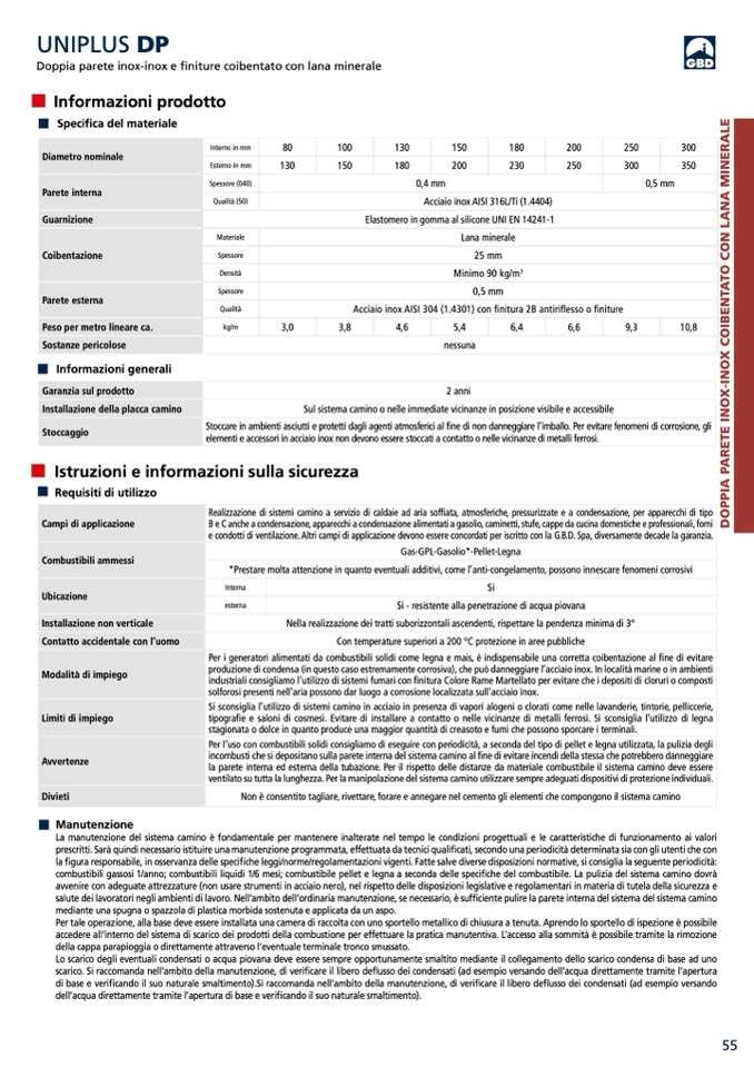 e condotti di ventilazione. Altri campi di applicazione devono essere concordati per iscritto con la G.B.D. Spa, diversamente decade la garanzia.