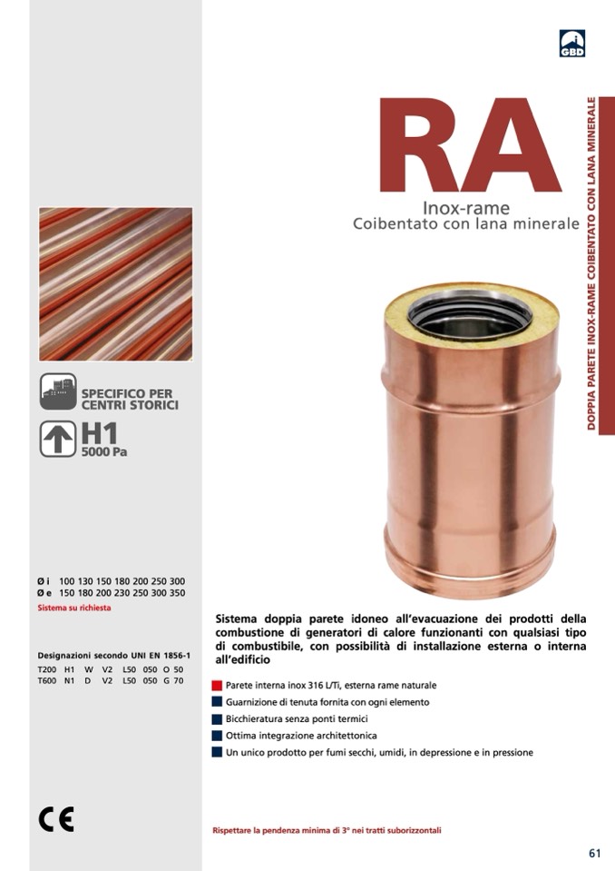 Parete interna inox 316 L/Ti, esterna rame naturale