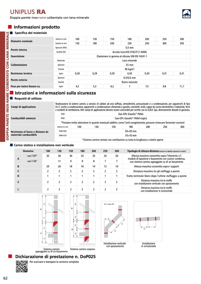 e condotti di ventilazione. Altri campi di applicazione devono essere concordati per iscritto con la G.B.D. Spa, diversamente decade la garanzia.