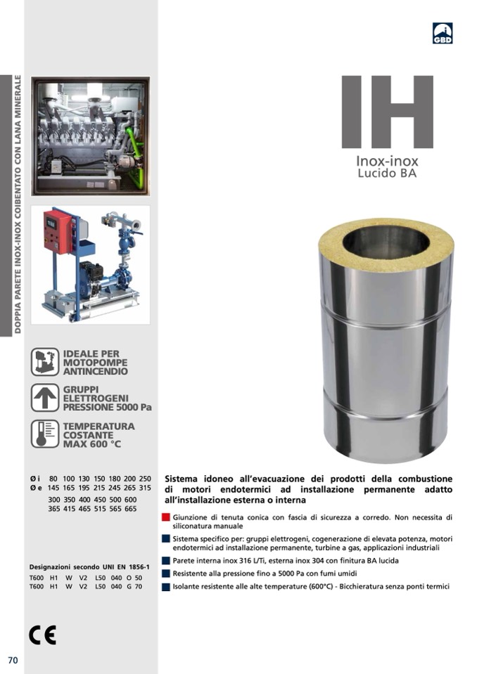 Resistente alla pressione fino a 5000 Pa con fumi umidi
