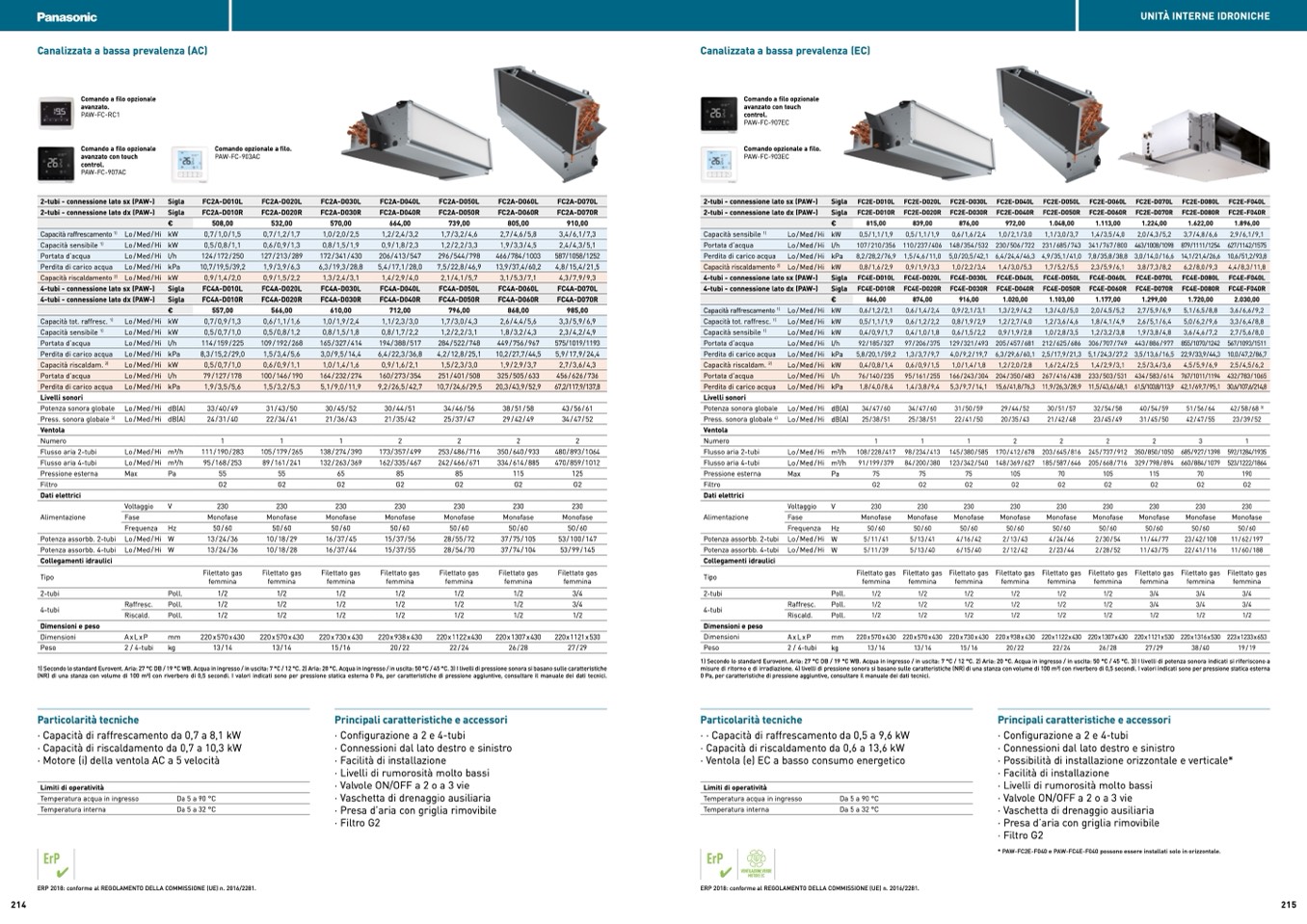 1) Secondo lo standard Eurovent. Aria: 27 °C DB / 19 °C WB. Acqua in ingresso / in uscita: 7 °C / 12 °C. 2) Aria: 20 °C. Acqua in ingresso / in uscita: 50 °C / 45 °C. 3) I livelli di potenza sonora indicati si riferiscono a