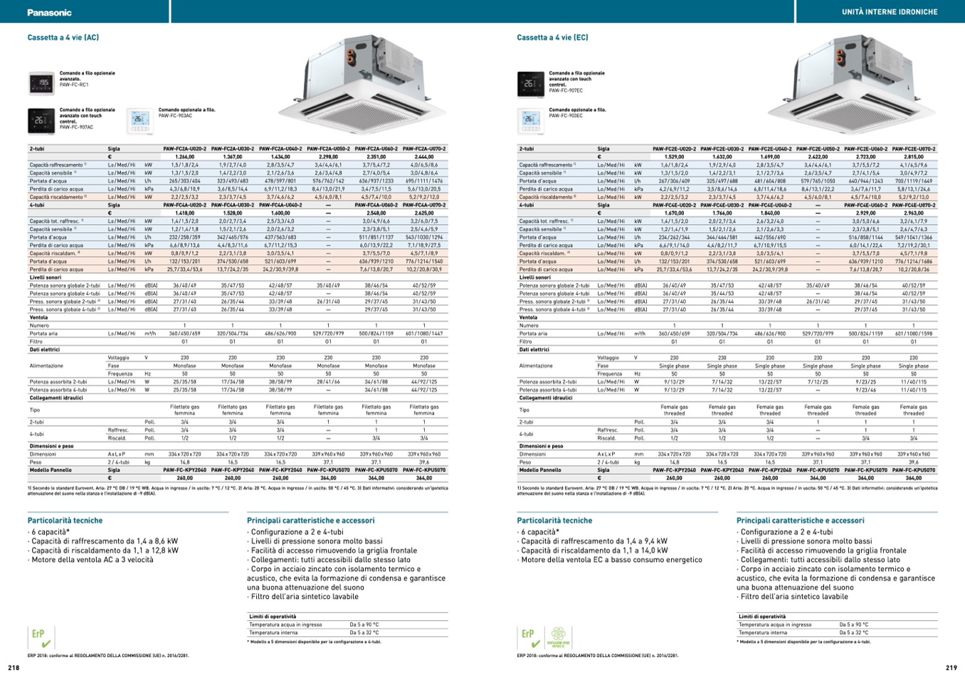 1) Secondo lo standard Eurovent. Aria: 27 °C DB / 19 °C WB. Acqua in ingresso / in uscita: 7 °C / 12 °C. 2) Aria: 20 °C. Acqua in ingresso / in uscita: 50 °C / 45 °C. 3) Dati informativi: considerando un’ipotetica