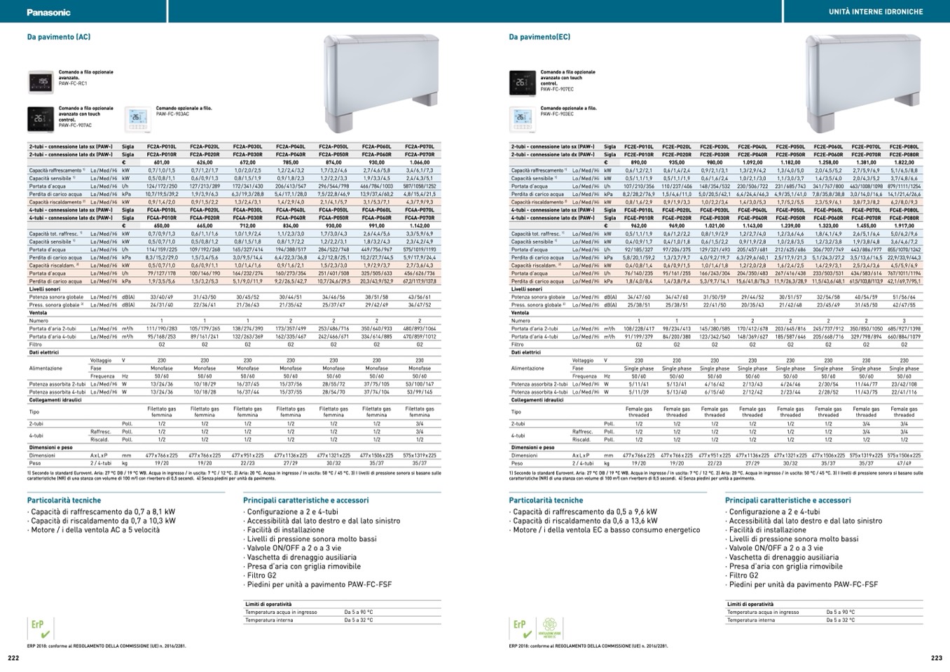 1) Secondo lo standard Eurovent. Aria: 27 °C DB / 19 °C WB. Acqua in ingresso / in uscita: 7 °C / 12 °C. 2) Aria: 20 °C. Acqua in ingresso / in uscita: 50 °C / 45 °C. 3) I livelli di pressione sonora si basano sulle