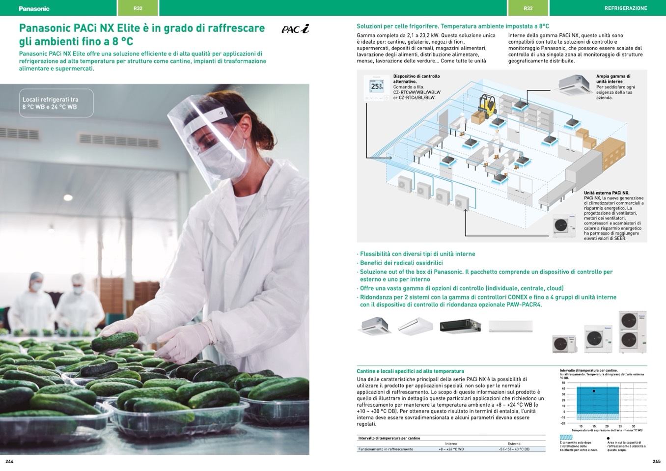 raffrescamento per mantenere la temperatura ambiente a +8 ~ +24 °C WB (o