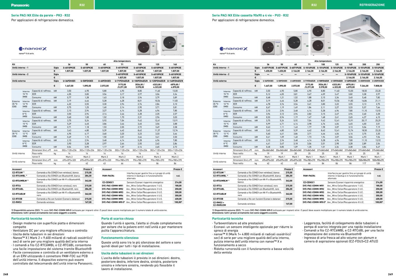 1) Disponibilità autunno 2023. *Il costo SVC-PAC-COMM-WR›5 (utilizzato per impianti oltre i 5 pezzi) deve essere moltiplicato per il numero totale di unità esterne.