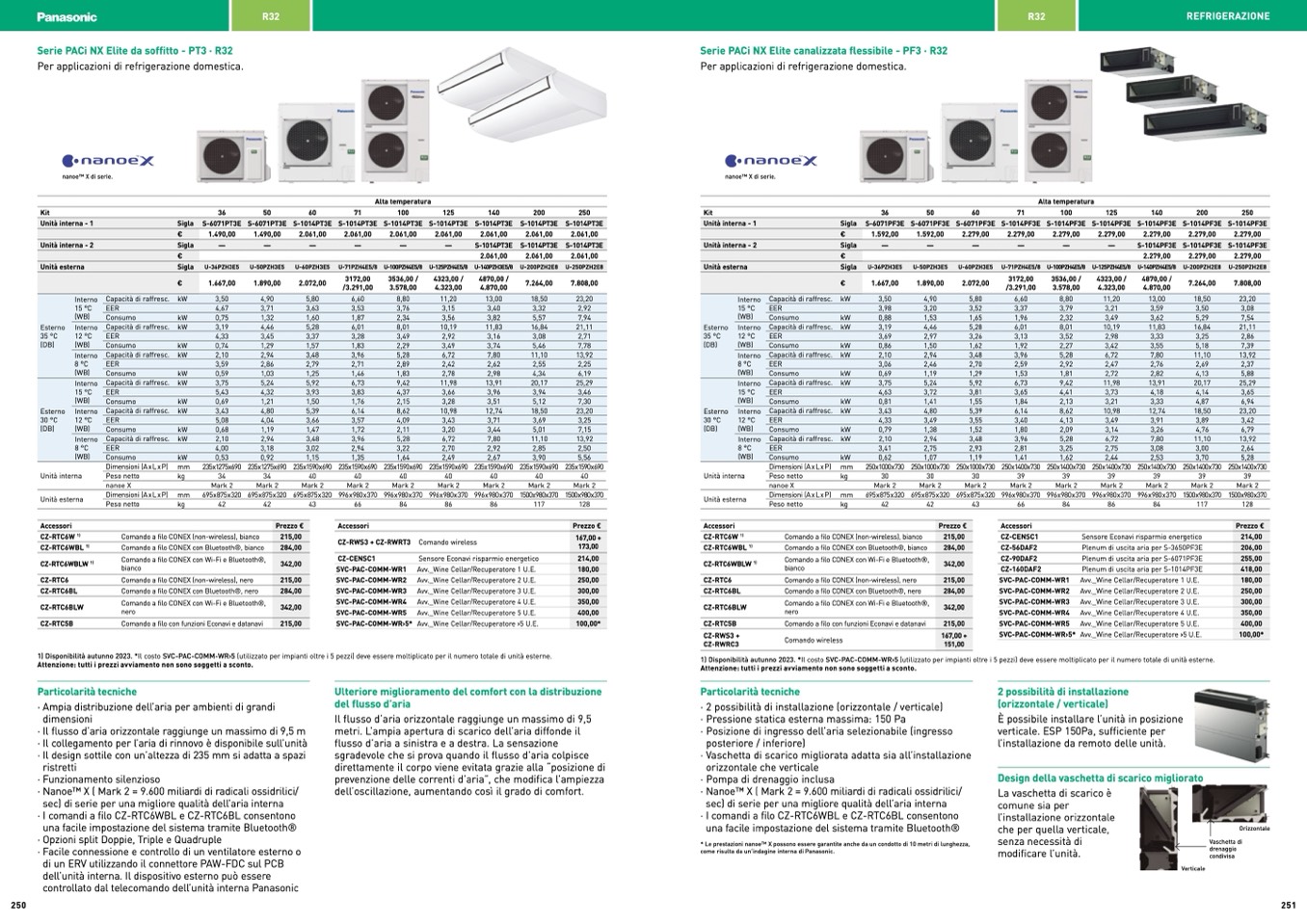 1) Disponibilità autunno 2023. *Il costo SVC-PAC-COMM-WR›5 (utilizzato per impianti oltre i 5 pezzi) deve essere moltiplicato per il numero totale di unità esterne.