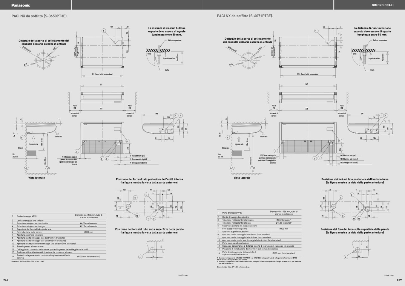 Posizione dei fori sul lato posteriore dell’unità interna