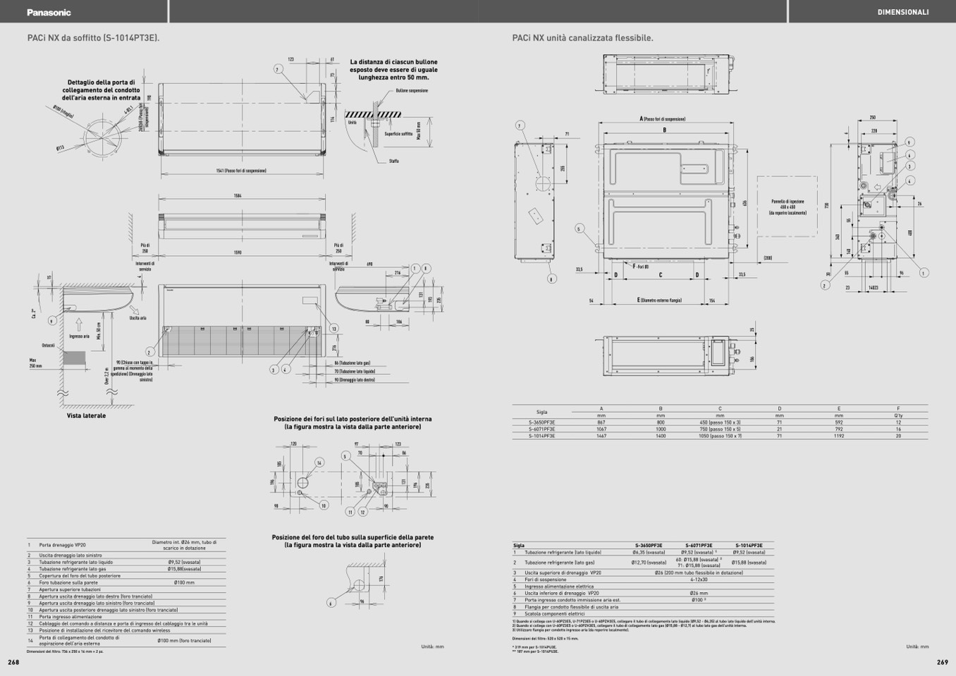 Posizione dei fori sul lato posteriore dell’unità interna