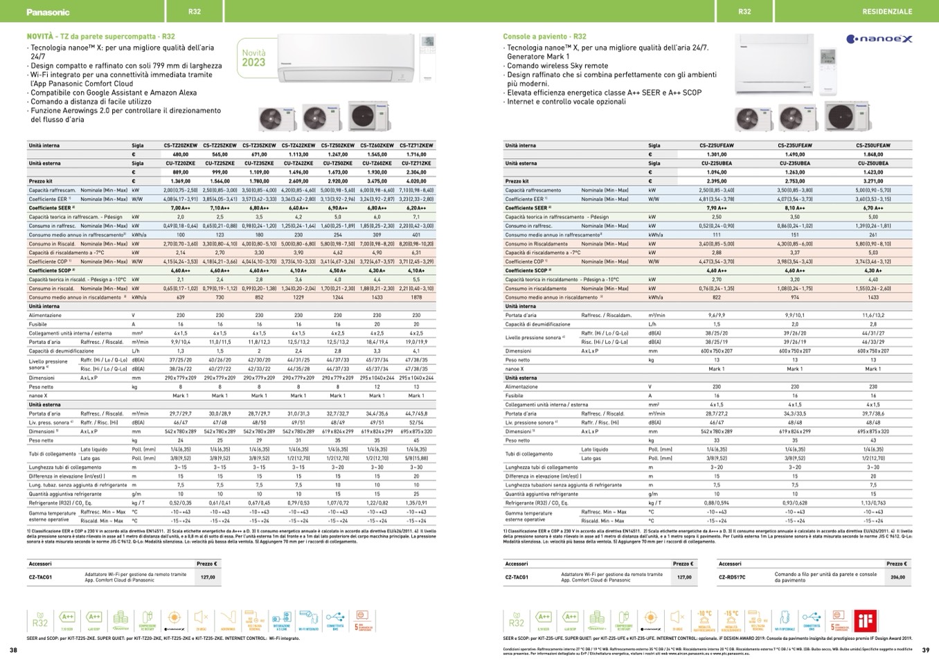 SEER e SCOP: per KIT-Z35-UFE. SUPER QUIET: per KIT-Z25-UFE e KIT-Z35-UFE. INTERNET CONTROL: opzionale. iF DESIGN AWARD 2019: Console da pavimento insignita del prestigioso premio IF Design Award 2019.