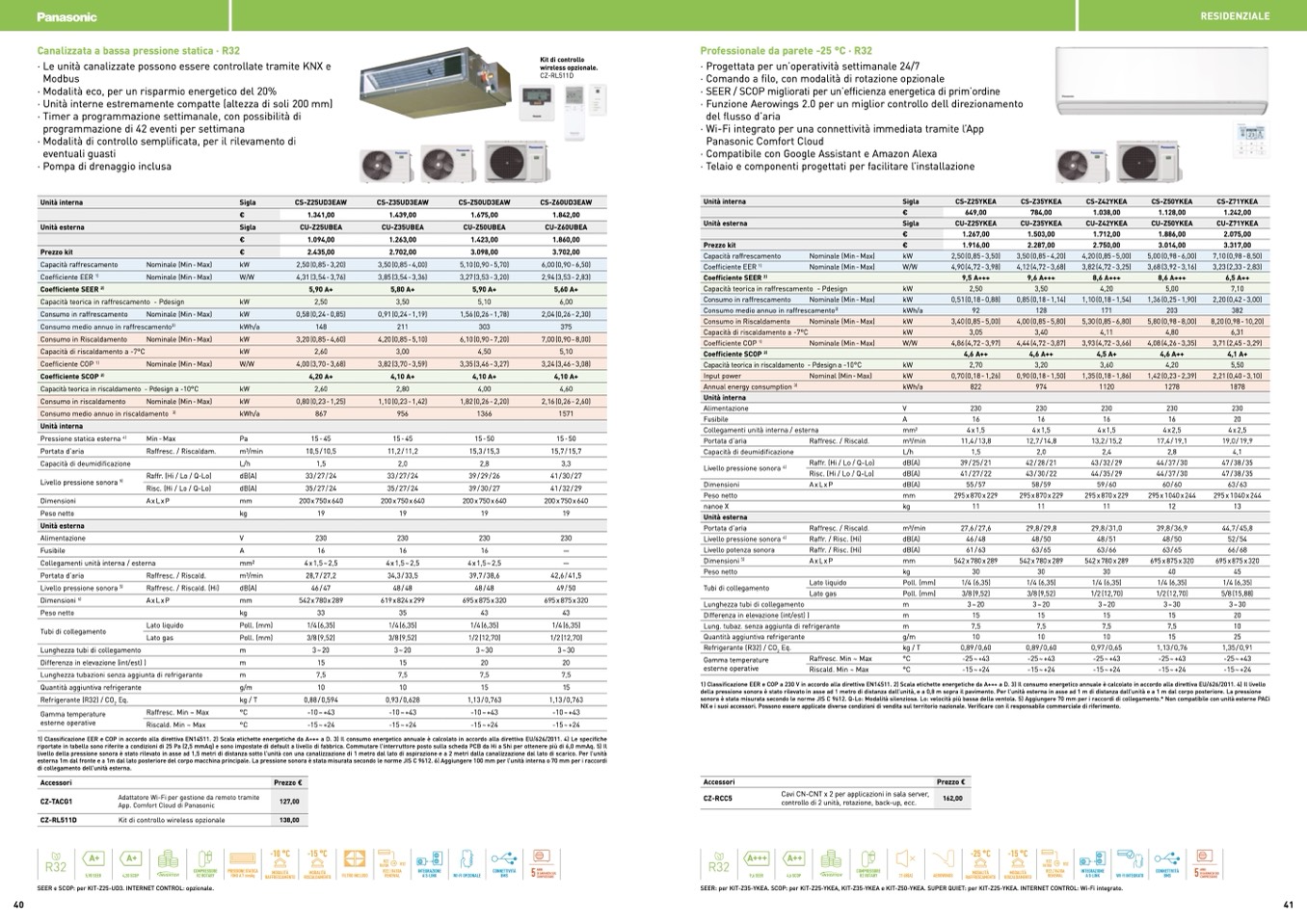 SEER: per KIT-Z35-YKEA. SCOP: per KIT-Z25-YKEA, KIT-Z35-YKEA e KIT-Z50-YKEA. SUPER QUIET: per KIT-Z25-YKEA. INTERNET CONTROL: Wi-Fi integrato.