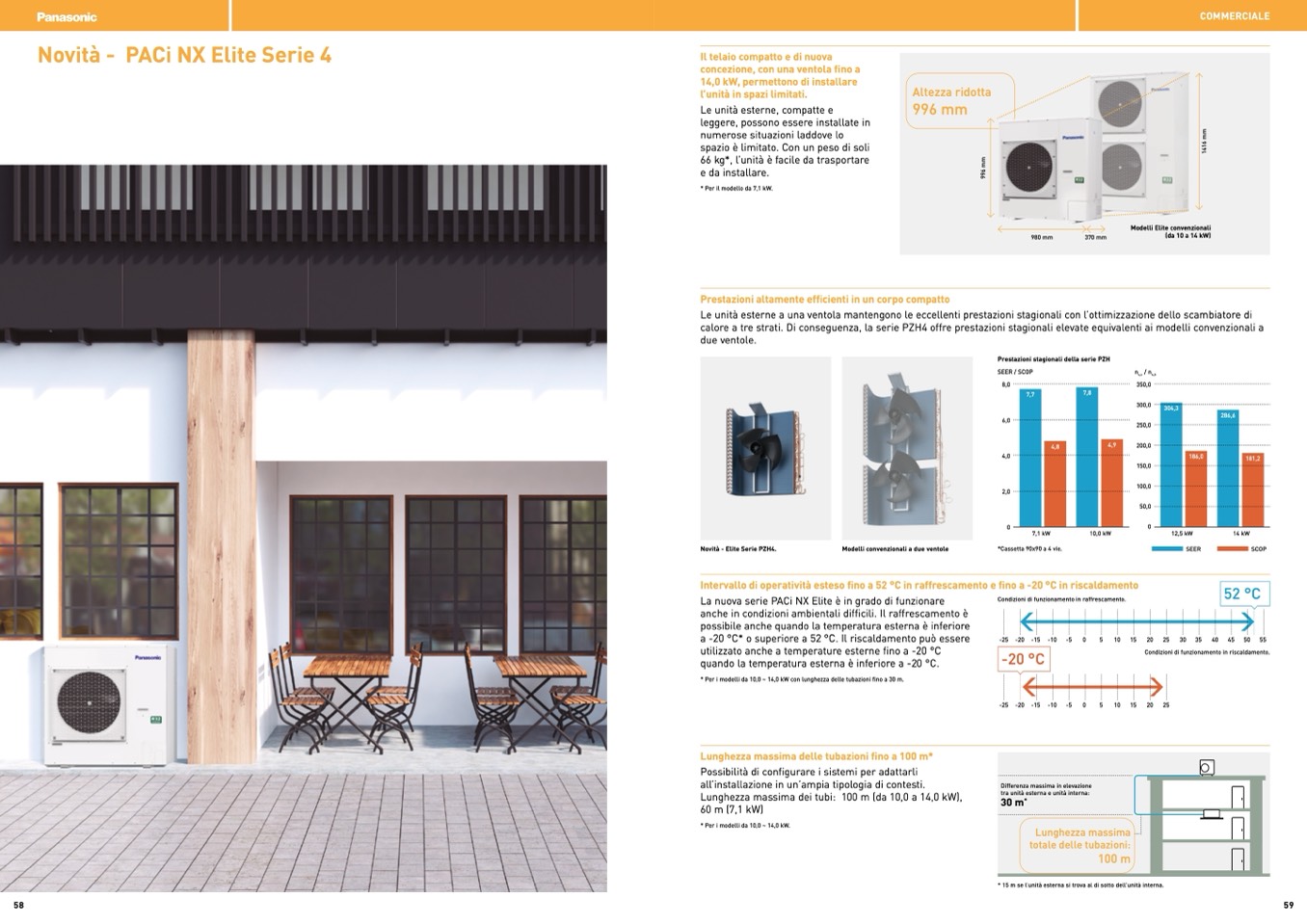 Intervallo di operatività esteso fino a 52 °C in raffrescamento e fino a -20 °C in riscaldamento