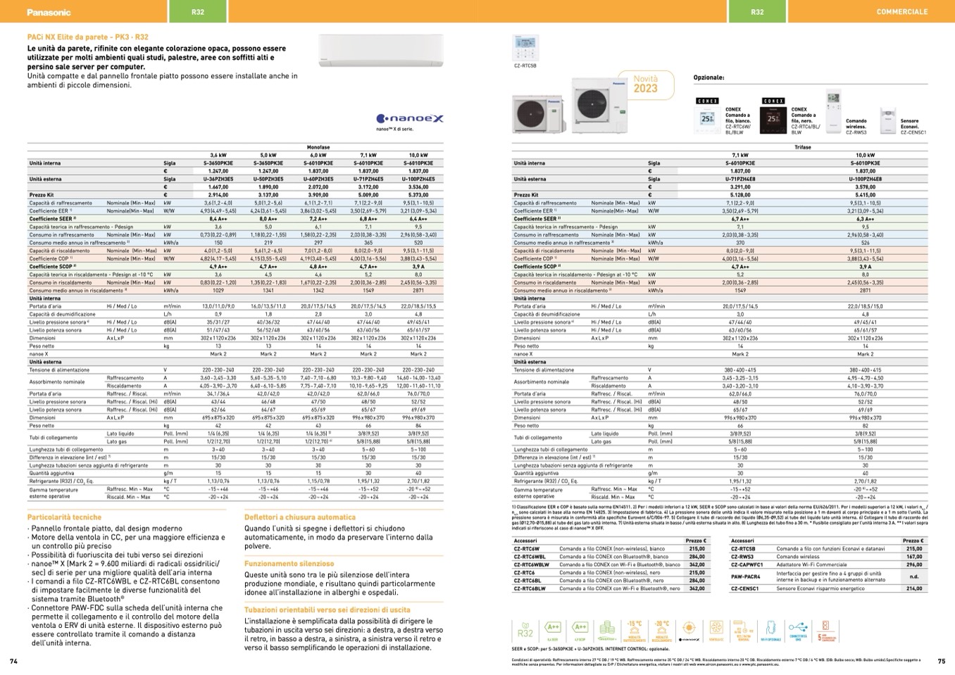 SEER e SCOP: per S-3650PK3E + U-36PZH3E5. INTERNET CONTROL: opzionale.