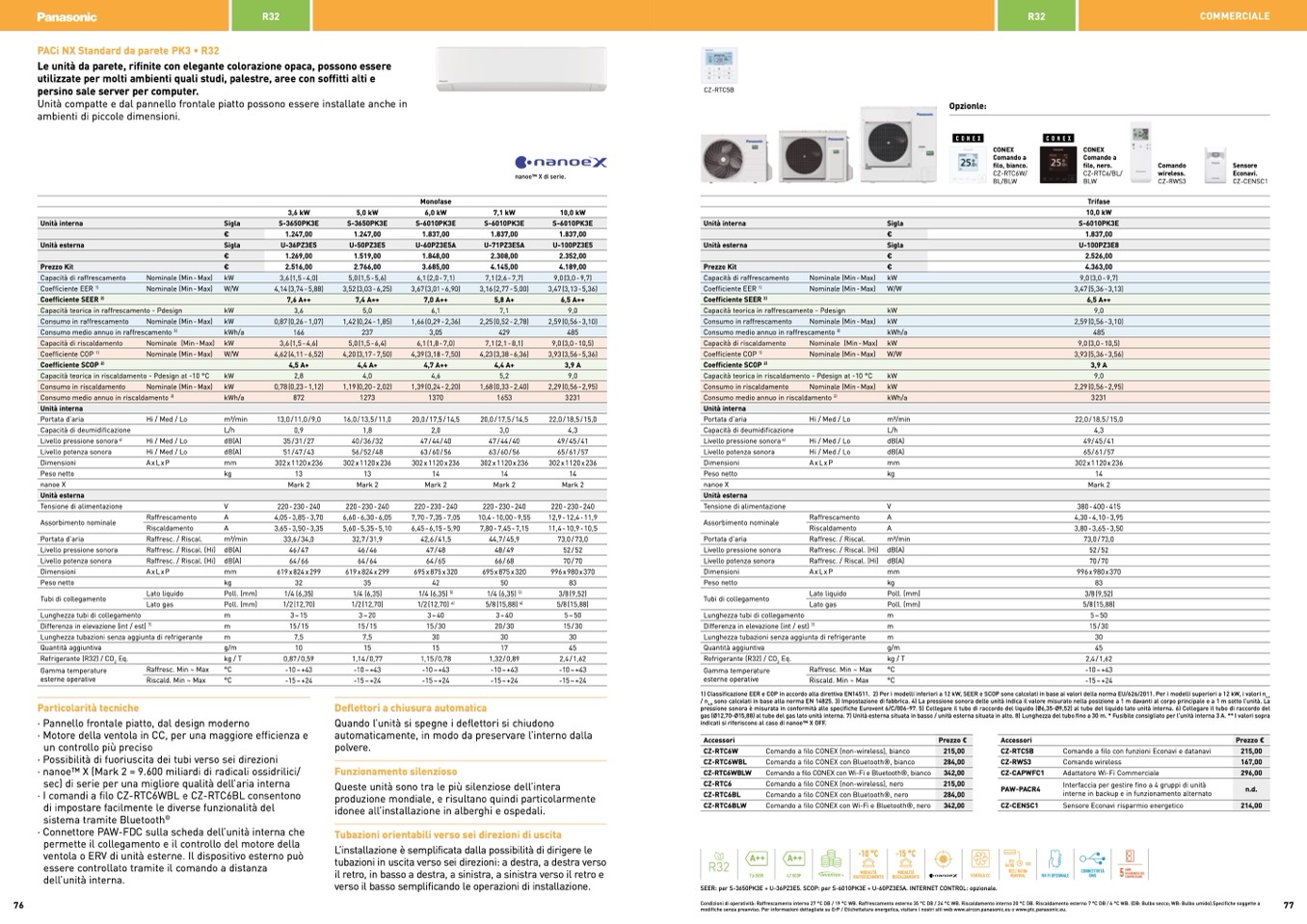 SEER: per S-3650PK3E + U-36PZ3E5. SCOP: per S-6010PK3E + U-60PZ3E5A. INTERNET CONTROL: opzionale.