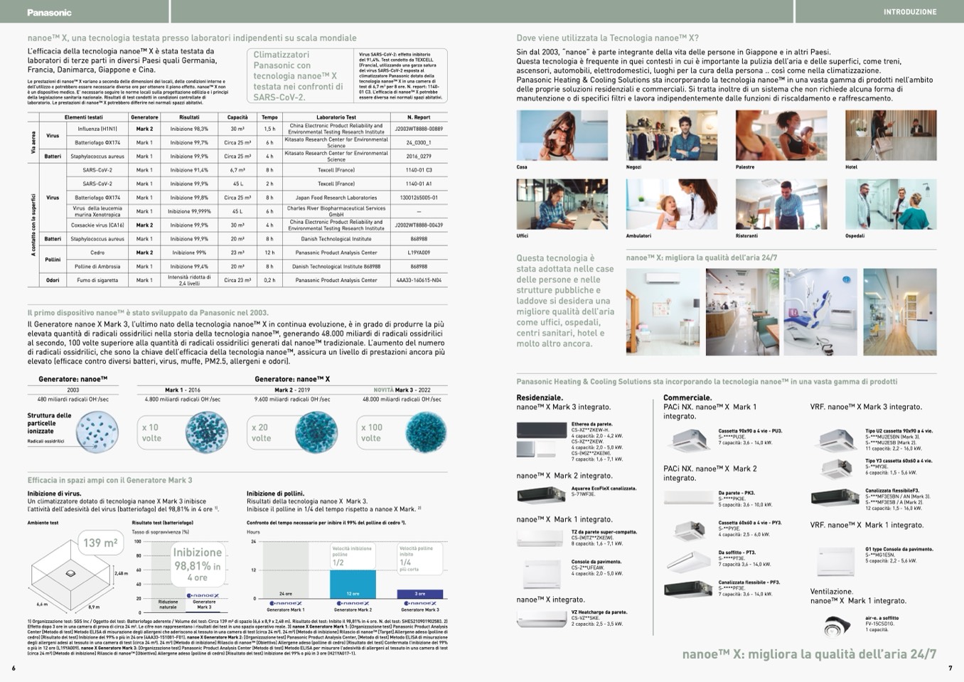 Le prestazioni di nanoeTM X variano a seconda delle dimensioni dei locali, delle condizioni interne e