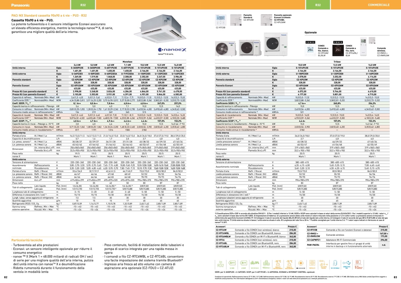 SEER: per S-3650PU3E + U-36PZ3E5. SCOP: per S-6071PU3E + U-60PZ3E5A. ECONAVI e INTERNET CONTROL: opzionali.