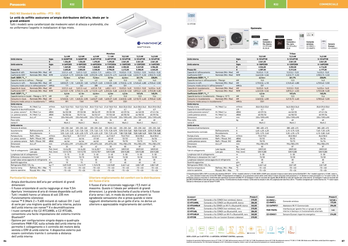 SEER e SCOP: per S-6071PT3E + U-60PZ3E5A. INTERNET CONTROL: opzionale.