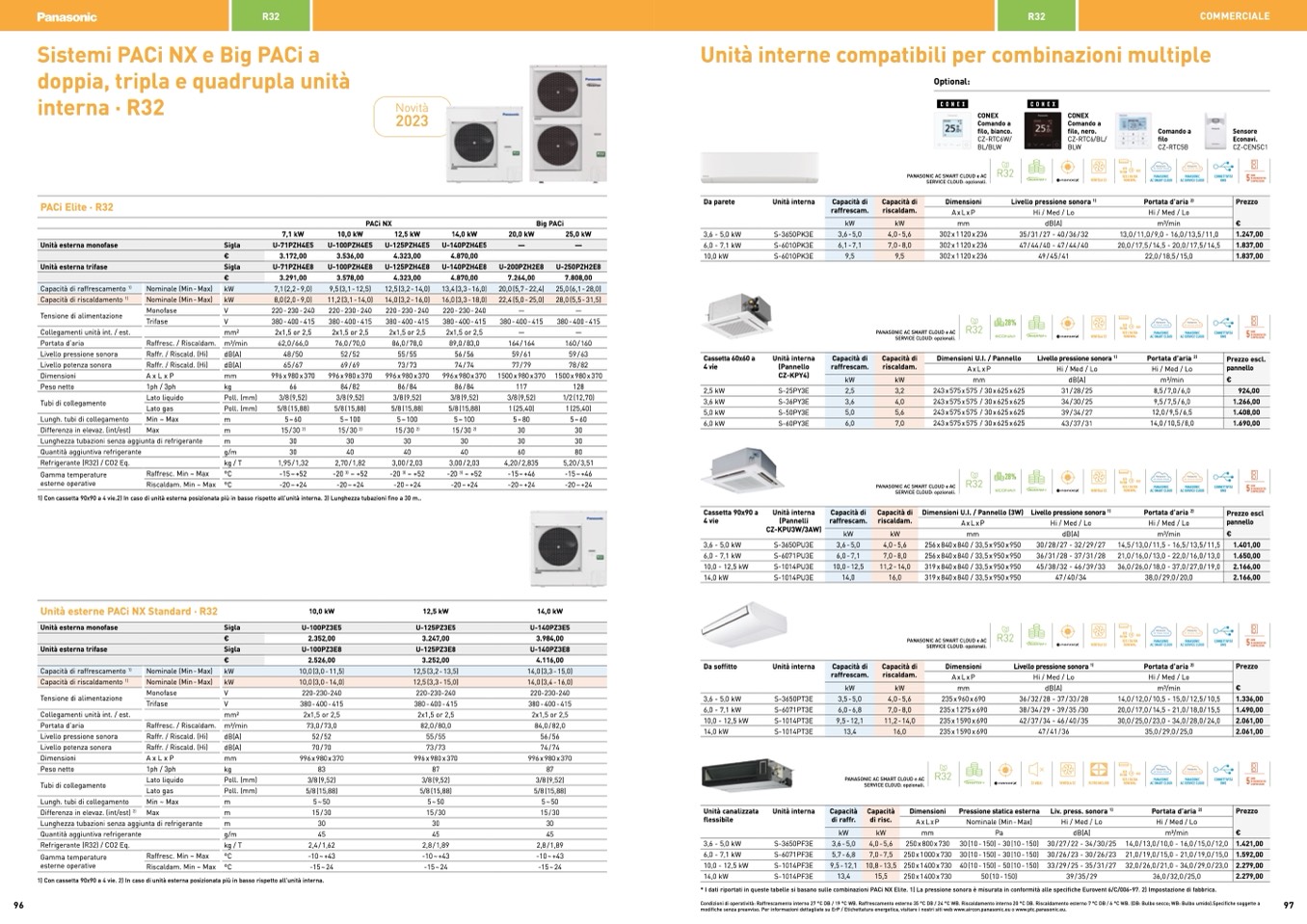 Condizioni di operatività: Raffrescamento interno 27 °C DB / 19 °C WB. Raffrescamento esterno 35 °C DB / 24 °C WB. Riscaldamento interno 20 °C DB. Riscaldamento esterno 7 °C DB / 6 °C WB. (DB: Bulbo secco; WB: Bulbo umido).Specifiche soggette a