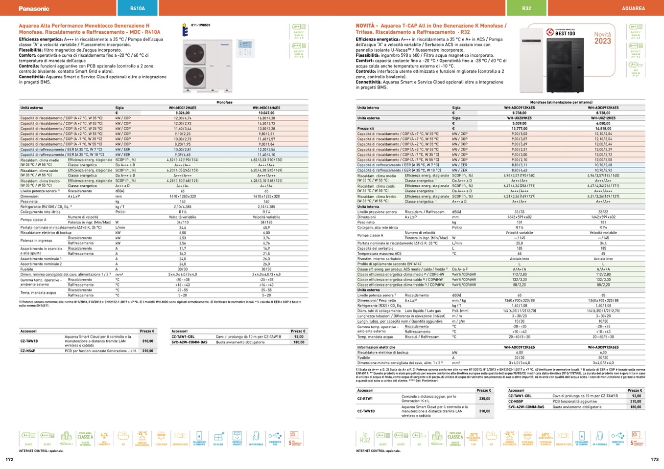 1) Potenza sonora conforme alle norme 811/2013, 813/2013 e EN12102-1:2017 a +7 °C. 2) I modelli WH-MDC sono sigillati ermeticamente. 3) Verificare le normative locali. * Il calcolo di EER e COP è basato