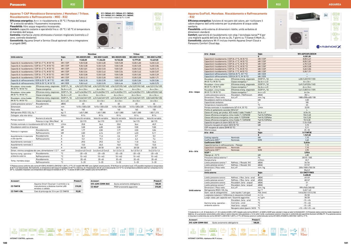 1) Potenza sonora conforme alle norme 811/2013, 813/2013 e EN12102-1:2017 a +7 °C. 2) I modelli WH-MXC sono sigillati ermeticamente. 3) Verificare le normative locali. 4) È possibile impostare la temperatura
