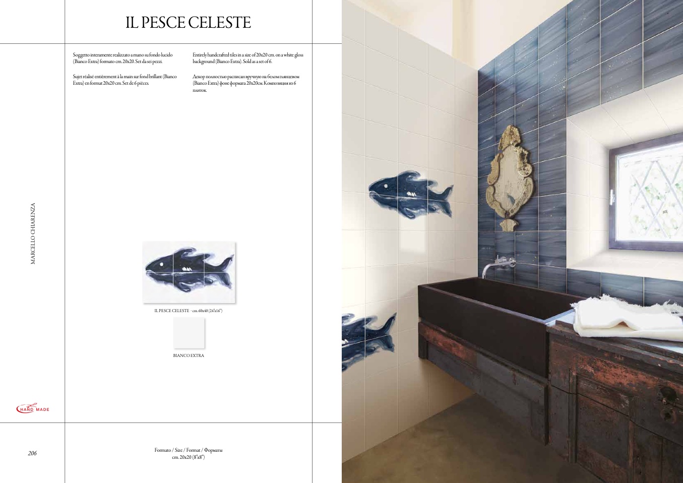 Entirely handcrafted tiles in a size of 20x20 cm. on a white gloss
