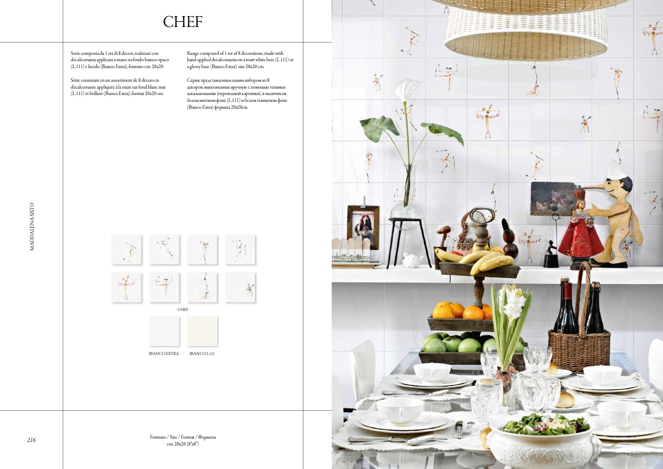 a glossy base (Bianco Extra), size 20x20 cm.